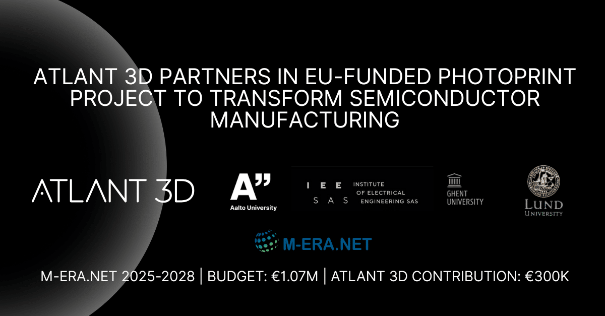 “We’re excited to contribute our platform to a project that aligns so well with our mission—enabling agile, sustainable, and precise manufacturing of advanced electronics,” said Dr. Maksym Plakhotnyuk, CEO of ATLANT 3D. “PhotoPrint has the potential to transform how microdevices are made, and we’re proud to be part of this European innovation effort.”